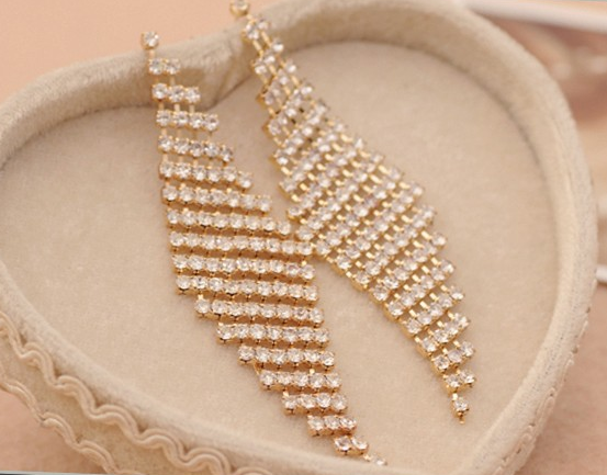 anting Baru Fashion desain belah ketupat besar jumbai kristal emas wanita hadiah new design Fashion rhombus crystal tassels big drop in gold earrings for women New gift JEW SJA0846535262 GHJ qty000