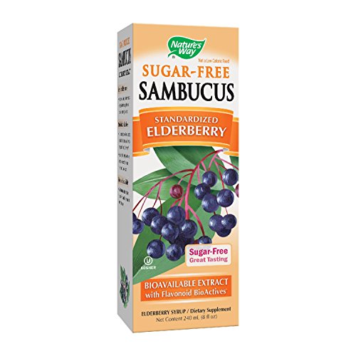 -. Binding : Health and Beauty -. Brand : Nature's Way -. Feature : Made from a unique cultivar of black elderberries with a higher level of naturally-occurring flavonoids / Full-spectrum black elderberry extract standardized to anthocyanins, which are potent flavonoid BioActives / Produced with a gentle, solvent-free extraction method that ensures maximum flavonoid potency / Sugarfree Syrup the high potency of BioActive constituents in Nature's Way / Gluten-Free, Kosher Certified and has No Artificial Preservatives -. Label : Nature's Way -. Manufacturer : Nature's Way -. NumberOfItems : 1 -. PackageQuantity : 1 -. ProductGroup : Health and Beauty -. ProductTypeName : HEALTH_PERSONAL_CARE -. Publisher : Nature's Way -. Studio : Nature's Way -. Title : Nature's Way Sambucus Sugar-Free Syrup