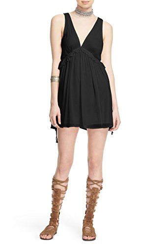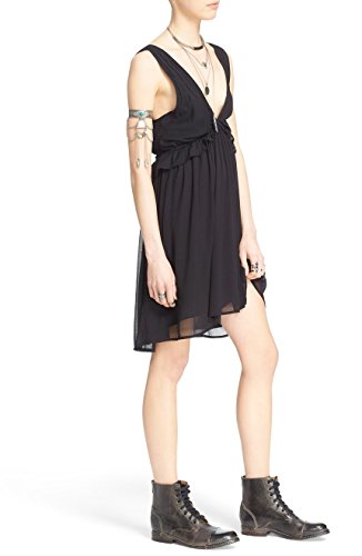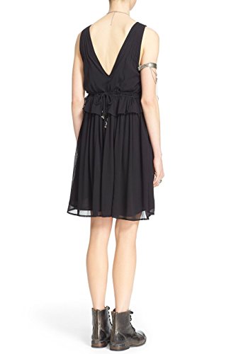 Binding : Apparel Product Description Let your free spirit shine in a drapey crepe babydoll dress styled with front and back deep-V necklines, a ruffle-trimmed Empire waist and a flouncy layered skirt. A figure-cinching drawcord accented with metallic details ties in back to finish the look. 34" front length; 37" back length (size Medium). V-neck. Sleeveless. Drawstring-tie waist. 100% nylon. Dry clean or machine wash cold, line dry. By Free People; imported. 0