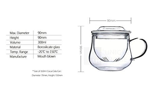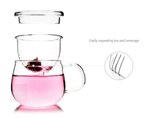 -. Brand : Unihom -. Feature : 30-day money back guarantee / 1 year free spare parts (exc. postage) / Free replacement if damaged during delivery / Dishwasher Safe, Refrigerator Safe / Lead Free, made of high borosilicate glass -. ProductGroup : Kitchen -. ProductTypeName : KITCHEN -. Title : UNIHOM - Glass All in one Tea Cup with Infuser and Lid