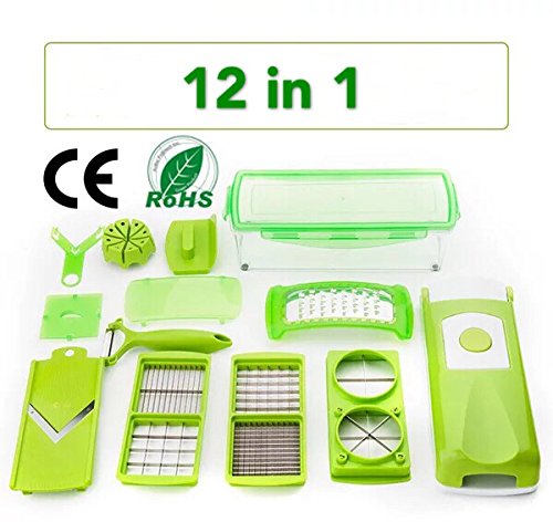 12 in 1 Pro Vegetable chopper, slicer,Onion Chopper,Strongest - NO MORE TEARS, Heavier Duty Multi Vegetable-Fruit-Cheese-Onion Chopper-Dicer-Kitchen Cutter (green)