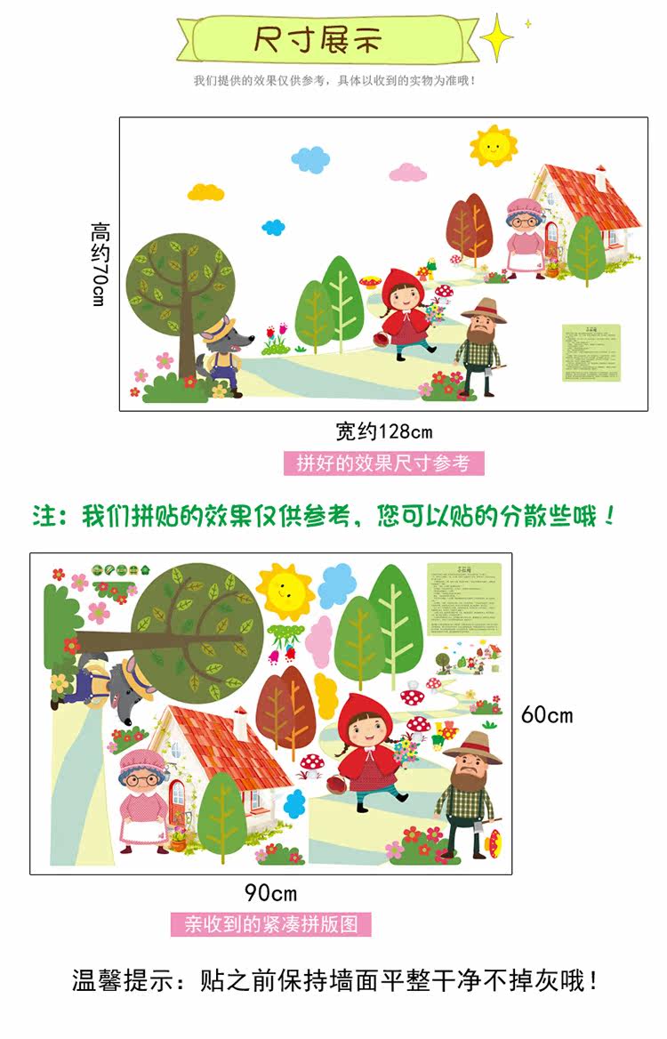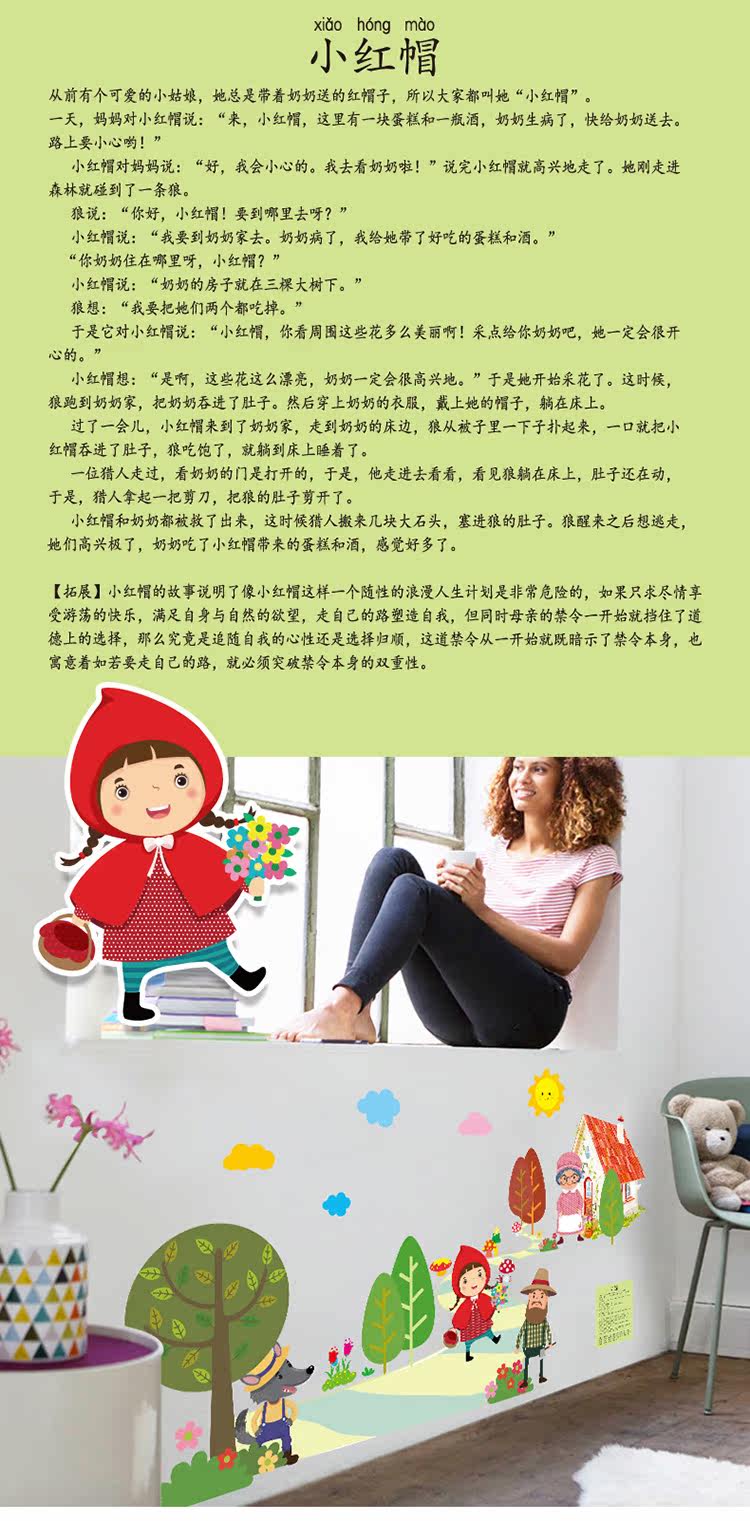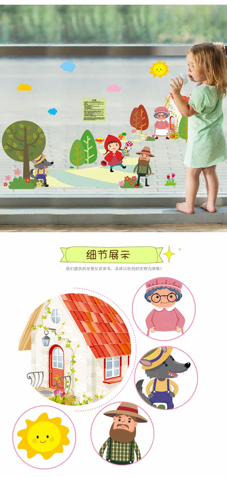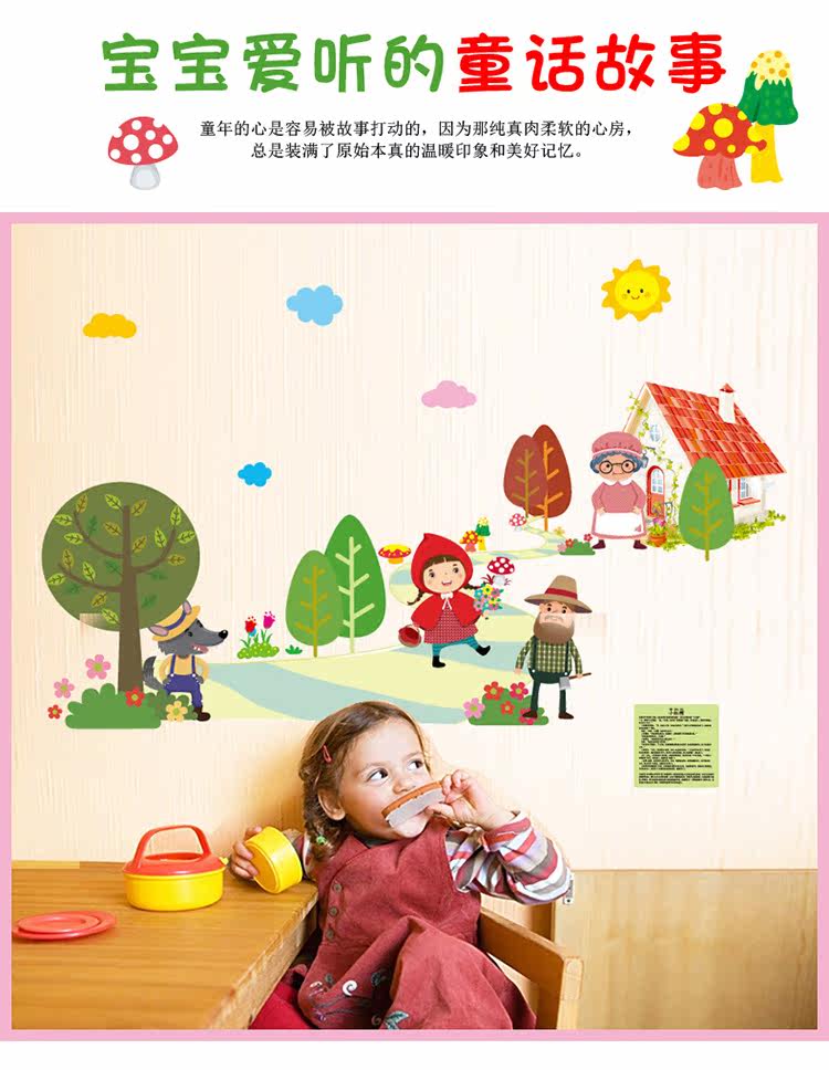儿童房装饰卡通墙贴画童话故事小红帽幼儿园教室墙面布置动漫人物
