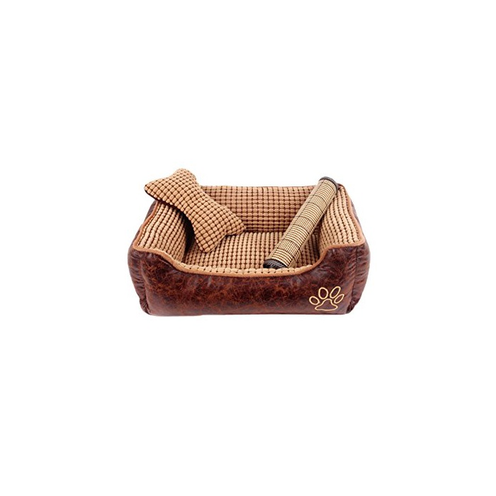 KAMA BRIDAL애완동물 베드 매트 4점 세트 스퀘어 사계절 통용침,돗자리,모포가 부착 브라운 4개의 사이즈