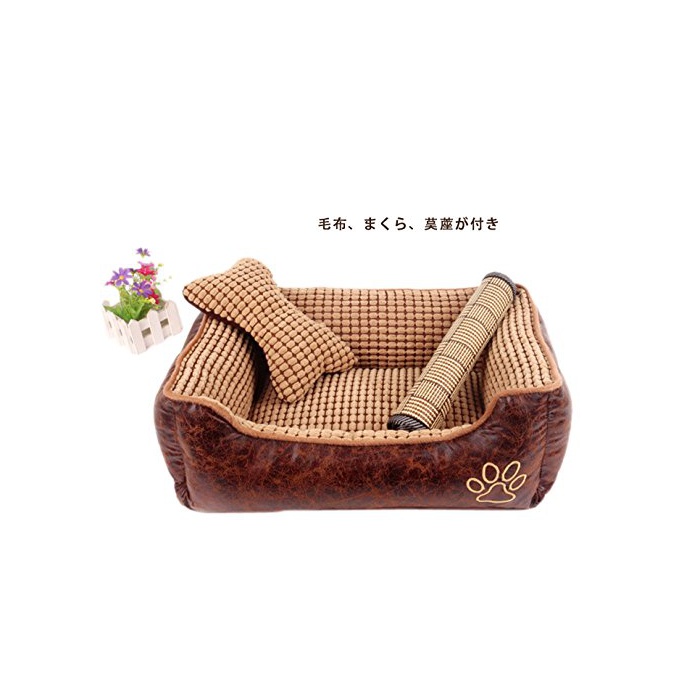 원본상품명:KAMA BRIDALペットベッド マット 四点セット スクエア 四季通用 枕、ござ、毛布が付き ブラウン 四つのサイズ