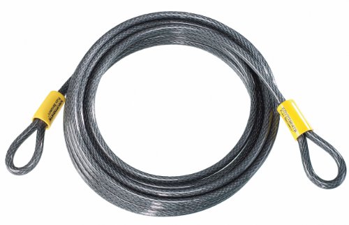 -. Feature : 3/8 inch (10 millimeter) braided steel cable has greater cut resistance than twisted cables / 7 foot (220 centimeter) length / Thick vinyl coating protects against scratching / Looped ends make for easy locking to anchor points with all Kryptonite locks or virtually any padlock or disc lock / Hook-n-loop strap for easy carrying