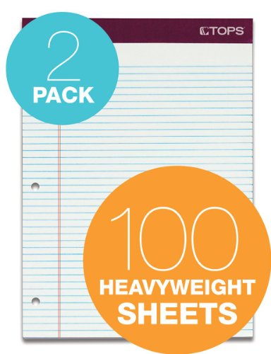 TOPS Double Docket Gold Writing Tablet, 8-1/2 x 11-3/4 Inches, Perforated, 3-Hole Punched, White, Narrow Rule, 100 Sheets per Pad, 2 Pads per Pack (99706)