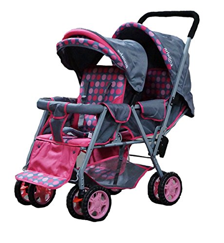 -. Feature : 5 point safety harness with padded crotch area for more comfort / Thicker seat cushion / Extended canopy for more sun protection / Large underseat storage and back seat pocket