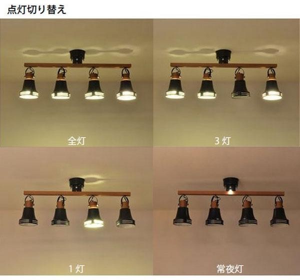 | 仕様 | 点灯:リモコン(4灯/3灯/1灯/常夜灯/消灯) 取付方法:引掛けシーリング 電球:E26/60Wまで(4個) ※LED電球・電球型蛍光灯使用可 ※電球別売 リモコン:単4電池2本使用 |