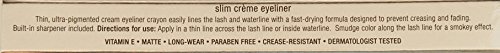 Thin, ultra-pigmented cream eyeliner crayon easily lines the lash and waterline with a fast-drying formula designed to prevent creasing and fading. Built-in sharpener included.