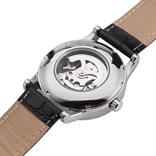 GuTe Mechanical GuTe출품 손목시계 맨즈 자동 감기 스켈리턴 가죽 밴드 앤틱 캐주얼 기계식 멋있 스팀 펑크 블랙