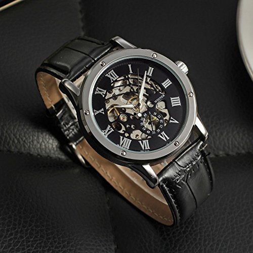 원본상품명: GuTe出品 腕時計 メンズ 自動?き スケルトン 革バンド アンティ?ク カジュアル 機械式 格好良い スチ?ムパンク ブラック