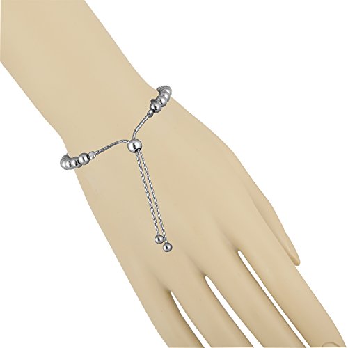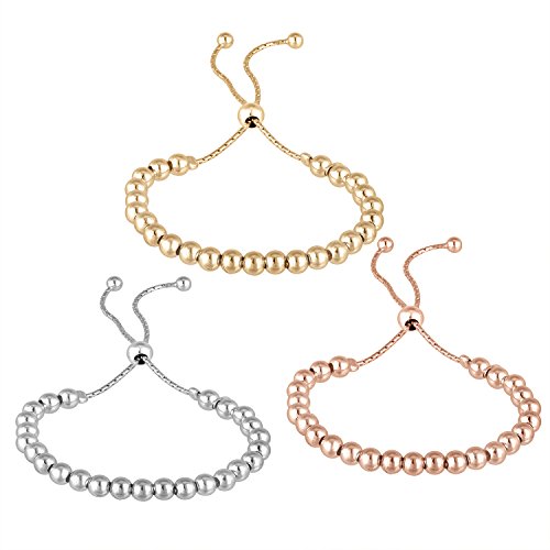 Easy on & off, no more asking someone for help in closing the clasp on your bracelet. Adjustable drawstring with dangling ends. This bracelet is made in Italy, is extremely lightweight, just 5.3 grams. Made of 925 sterling silver. Available in three colors which are nice for stacking. White, yellow or pink finish. Beads measure 5mm, and length of bracelet is 9.5" when fully extended. Our new adjustable collection of bracelets offers a trend-setting style that's a perfect fit. Featuring a comfortable and secure clasp, each elegant style looks amazing on its own, or as a stackable design that reflects her personal style. Beautiful stackable in three colors. 14kt. plating of White, Pink & Yellow. Wear them together, or all my itself. The high polish beads have beauty and luster.Feature