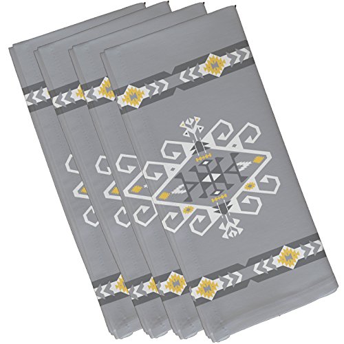 E by design Jodhpur Border 3, Geometric Print Napkin, 19 x 19", Gray