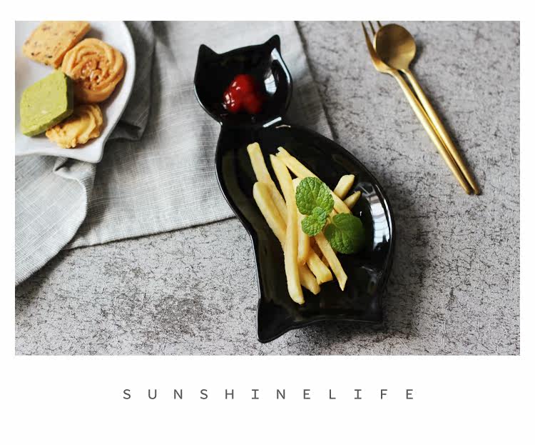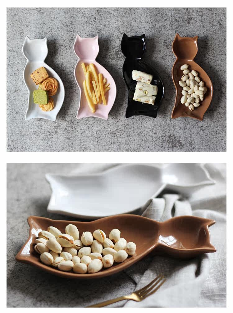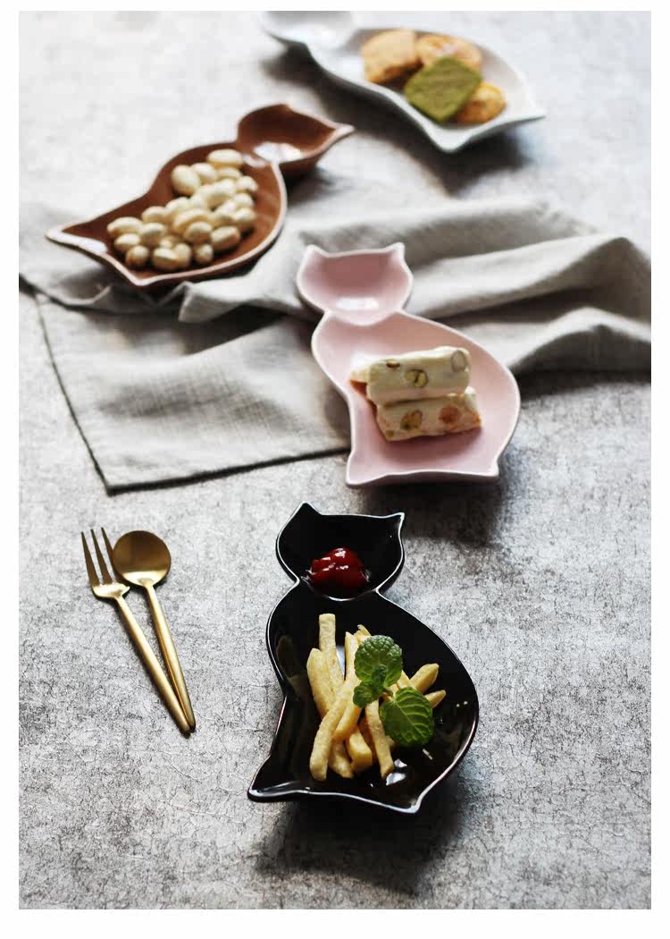 创意卡通分格儿童盘餐猫型可爱点心碟盘西餐厅菜盘子家用陶瓷餐具