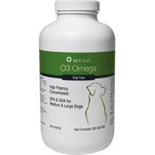 Studio : VetOne Publisher : VetOne Binding : Misc. Product Description O3 Omega Clip Tips for Medium/Large Dogs provide a highly concentrated source of Omega 3 fatty acids (EPA and DHA, from fish oil) in free form for optimal bioavailability. Recommended to support immune system and joint health to reduce inflammation associated with normal daily activity. Also promotes healthy skin and hair coat.;