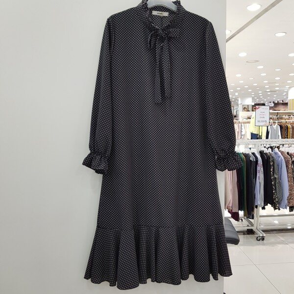 리본 원피스로 편안하고 여성스러움을 나타내는 스타일 입니다.