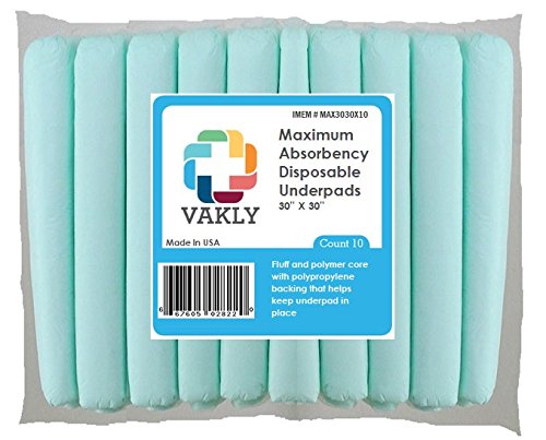 Studio : Vakly Publisher : Vakly Binding : Health and Beauty Product Description Vakly Delux Disposable Polymer Underpads come in sizes 23x36, 30x30 and 30x36. These are maximum absorbent Waterproof bed pads that will offer great overnight protection for bedding, furniture, sofas, couches, wheelchair and flooring. These chux are great for children and adults that are Incontinence and have heavy leaking. You can also use these disposable under pads for training animals and pets, changing tables and home births. These MaxEeze Care Delux Maximum Absorbency Incontinence pads also come in 26x30 with 18 inch tuckable wings. The polymer offers extra protection so that only one pad is needed and helps keep underpad in place . These Incontinence bed pads are latex free and come in packs of 5, 10, 15 and 20. 0