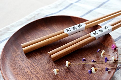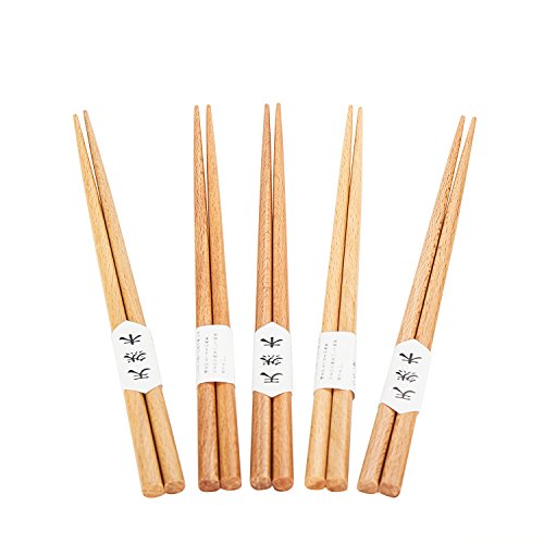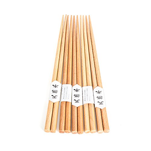 Garcoo Natural Beech Wood Japanese Chopsticks, Pack of 5, Smooth Surface, Premium Quality, 8.75-inch Long