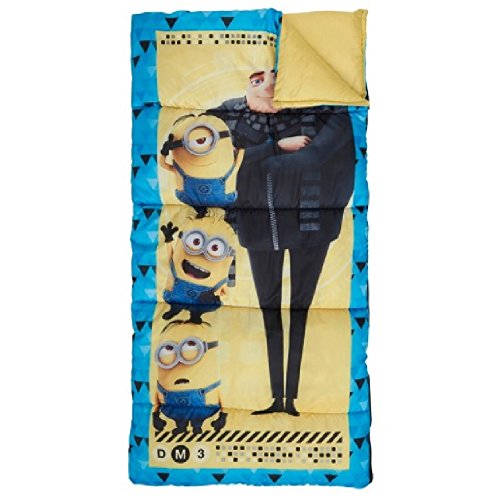 Studio : Exxel Publisher : Exxel Product Description Whether they are camping outside or playing indoors, this Universal Despicable 28" x 56" Sleeping Bag by Exxel Outdoors will keep them cozy and comfortable. Full length self-repairing zipper Triloft II performance sleeping bag insulation 2 lb. fill weight with a 45° temperature rating in the sleeping bag 28" x 56" Age: 4 years up 0