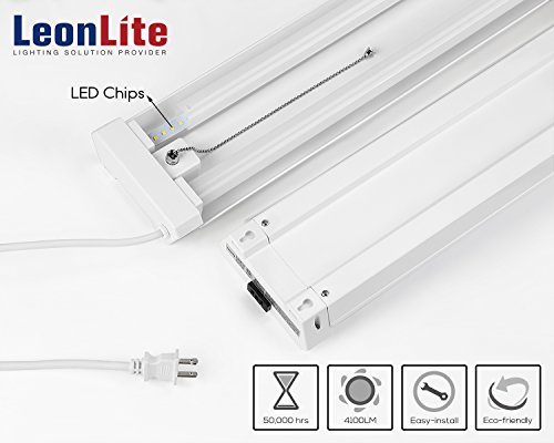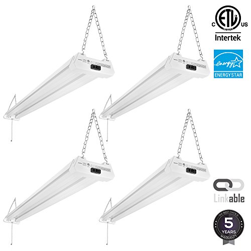 4-PACK 4ft 40W Linkable LED Utility Shop Light, 4100 Lumens, ENERGY STAR & ETL Listed, Double Integrated LED Ceiling Fixture, 5000K Daylight, Pull Cord Switch, Garage/Basement/Workshop