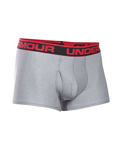 Under Armour Men's Original Series 3” Boxerjock, True Gray Heather/Red, Medium