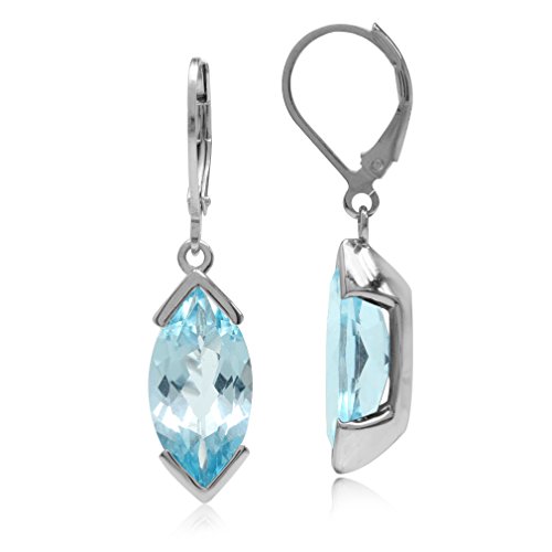 9.06ct. 16x8MM Genuine Marquise Shape Blue Topaz 925 Sterling Silver Leverback Dangle Earrings