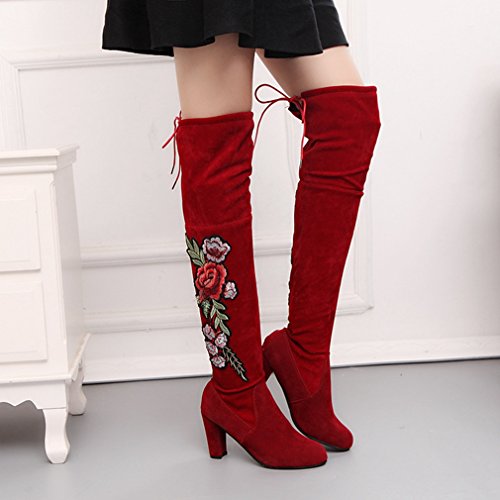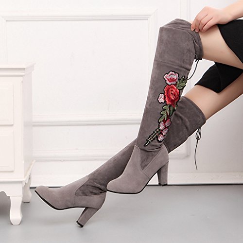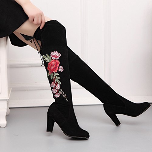 Binding : Apparel Product Description Great and comfortable design This boot features a classic over the knee style design ,be warm and stunning with these over the knee boots! for a flexible fit, these versatile block high-heeled boots, shaped with stretchy material collars for ease of fit, and finished with cushioned insole for comfort. 0