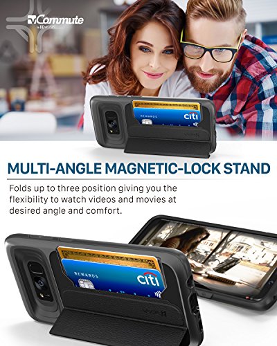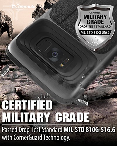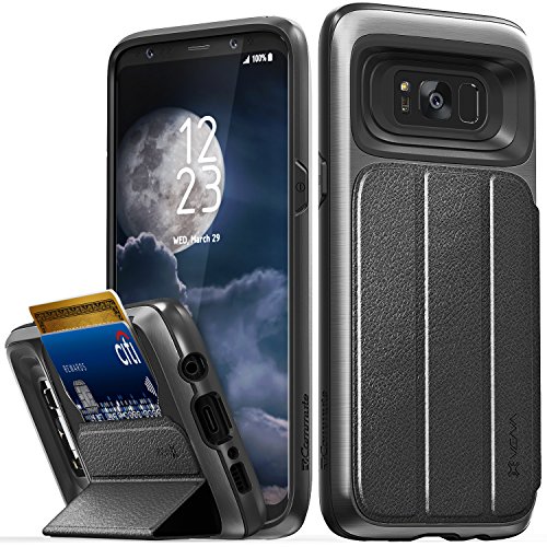 Made from high-quality polycarbonate (PC) and shock-absorbing thermoplastic polyurethane (TPU), this Galaxy S8 Plus wallet case has been drop tested to meet MIL-STD 810G-516.6, surviving 26 drops from 4 feet high. The TPU layer on the inside of the case ensures your cards remain scratch-free.