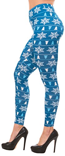 Just One Women's Winter Holiday Christmas Leggings (Blue Snowflake, S)