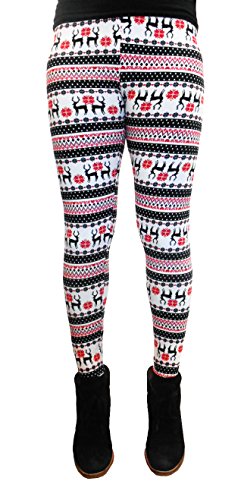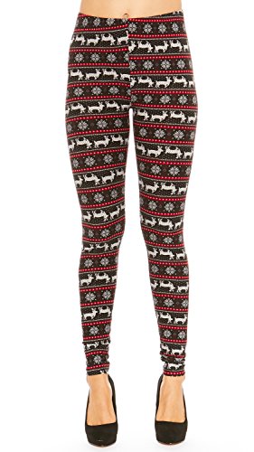 Just One Women's Winter Reindeer Christmas Leggings (Black, Med)