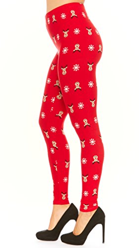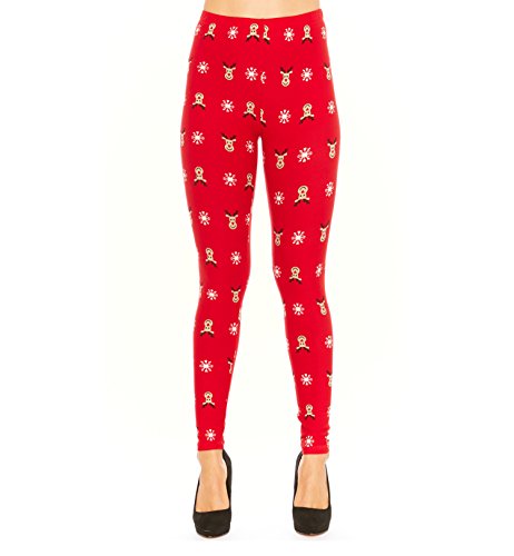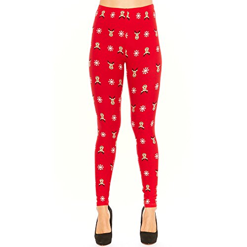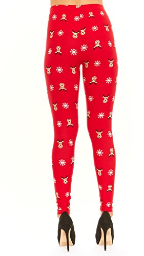 Just One Women's Winter Holiday Christmas Leggings (Red Reindeer, X-Large)