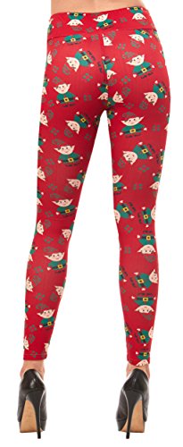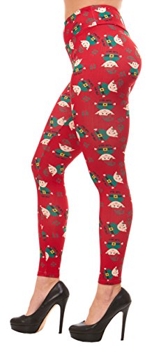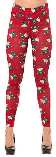 Just One Women's Winter Holiday Christmas Leggings (Red Elves, M)