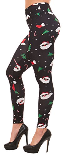 Just One Women's Winter Holiday Christmas Leggings (Santa Stockings, M)