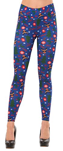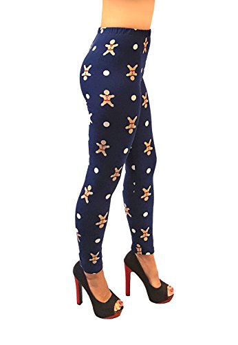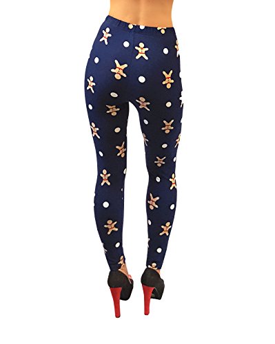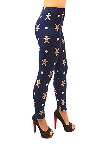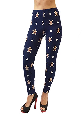 Just One Women's Xmas Winter Gingerbread Man Christmas Leggings (Navy Blue, 1X)