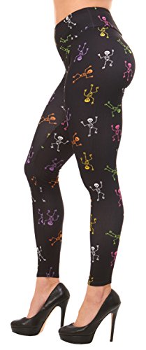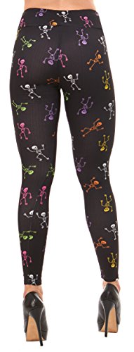 Just One Women's Fun Peach Feel Halloween Leggings (Multi-Color Skeletons, S)