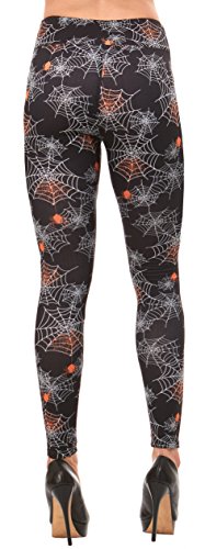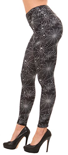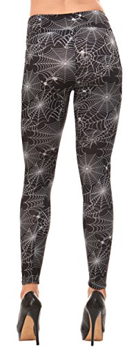 Just One Women's Fun Peach Feel Halloween Leggings (Black/White Spiderwebs, M)