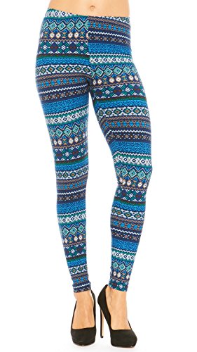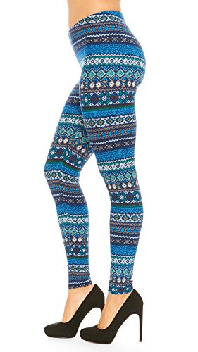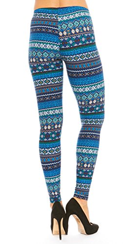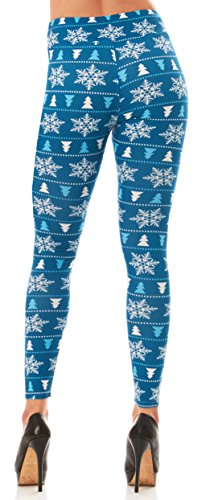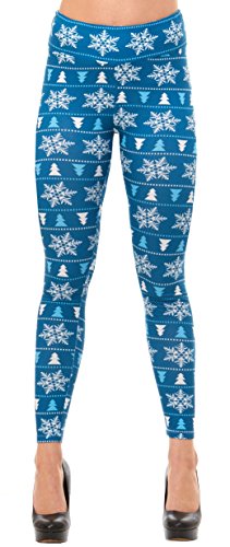 Just One Women's Winter Holiday Christmas Leggings (Blue Snowflake, M)