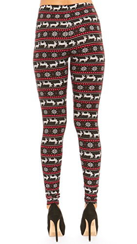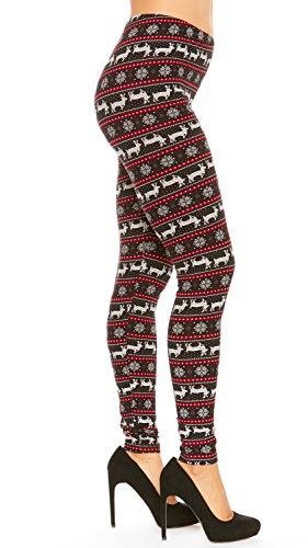 Just One Women's Winter Reindeer Christmas Leggings (Black, Large)