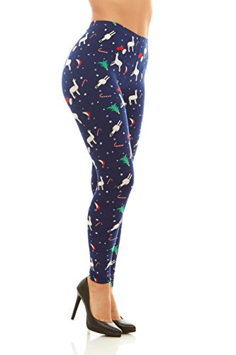 Just One Women's Winter Holiday Christmas Leggings (Blue Llama, L)
