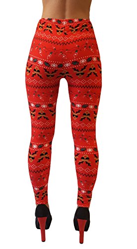 Just One Women's Xmas Soft Winter Snowflake Reindeer Christmas Leggings (Red, L)