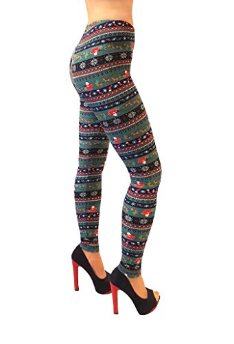 Just One Women's Winter Holiday Christmas Leggings (Green Sleigh, Large)
