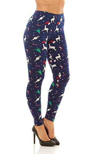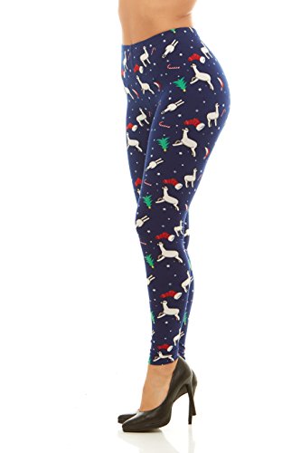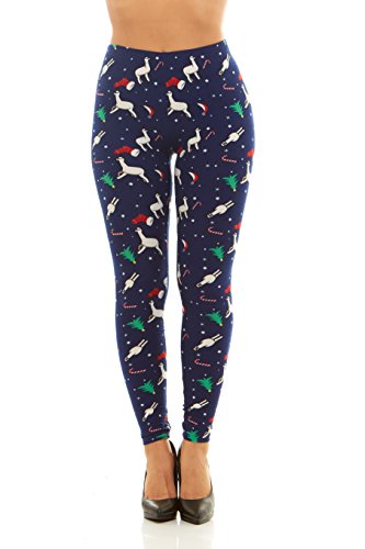 Just One Women's Winter Holiday Christmas Leggings (Blue Llama, M)