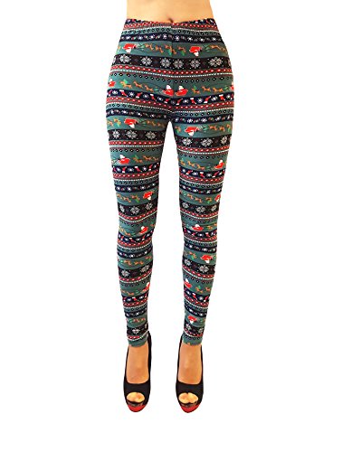 Just One Women's Winter Holiday Christmas Leggings (Green Sleigh, Medium)
