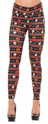 Just One Women's Fun Peach Feel Halloween Leggings (Black/Orange Pumpkin, S)