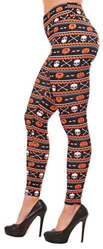 Just One Women's Fun Peach Feel Halloween Leggings (Black/Orange Pumpkin, M)