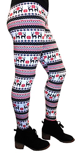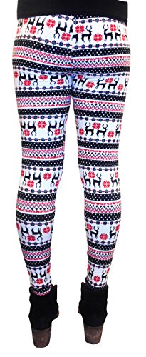 Just One Women's Winter Reindeer Christmas Leggings (White, Large)