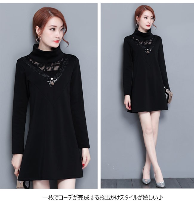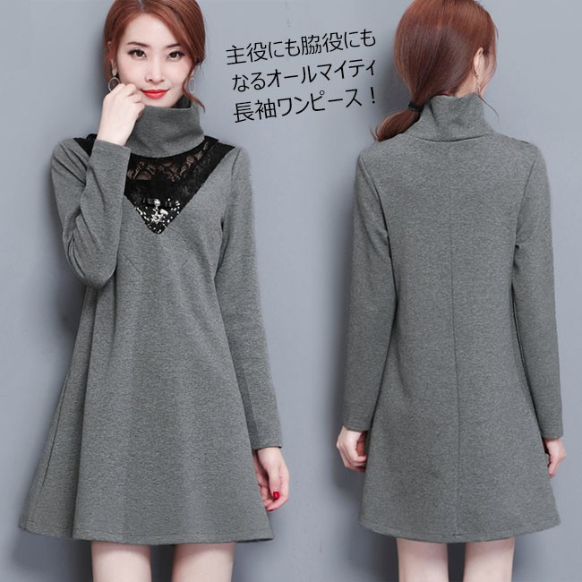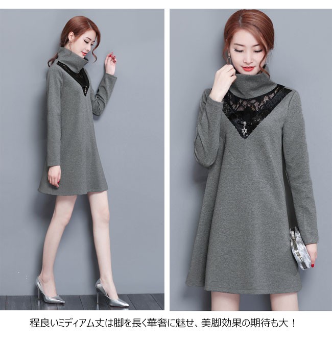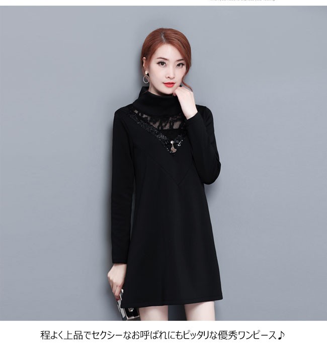 | 商品名 | 裏起毛 ワンピース レディース 暖かい 裏ボア 長袖 レースワンピース 大きいサイズ Aライン レース切り替え チュニック セクシー 通勤 OL お呼ばれ 2018春新作 |
