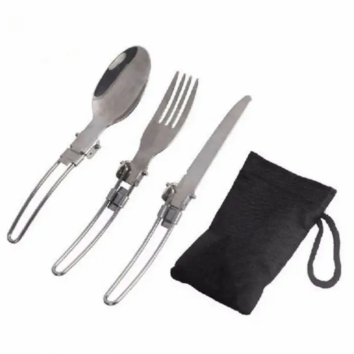 Folding Camping Cutlery Utensils Dinnerware Knife Fork Spoon Portable Outdoor Dining Tableware Set