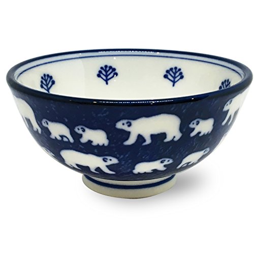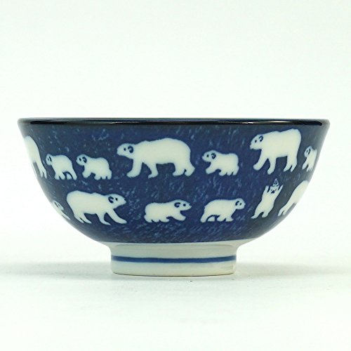 Mino ware Japanese Ceramics Rice Bowl White Bear Navy made in Japan