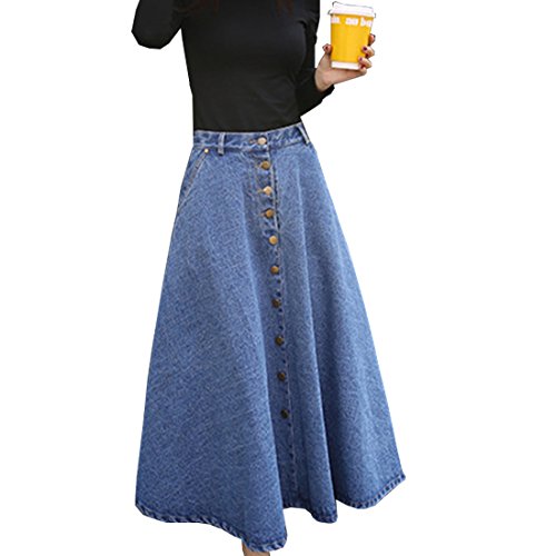 -. Title : Yangelo レディース デニムスカート マキシ丈 Aライン スカート デニム ロング フロント ボタン マーメイドライン スカート 着痩せ カジュアル